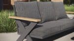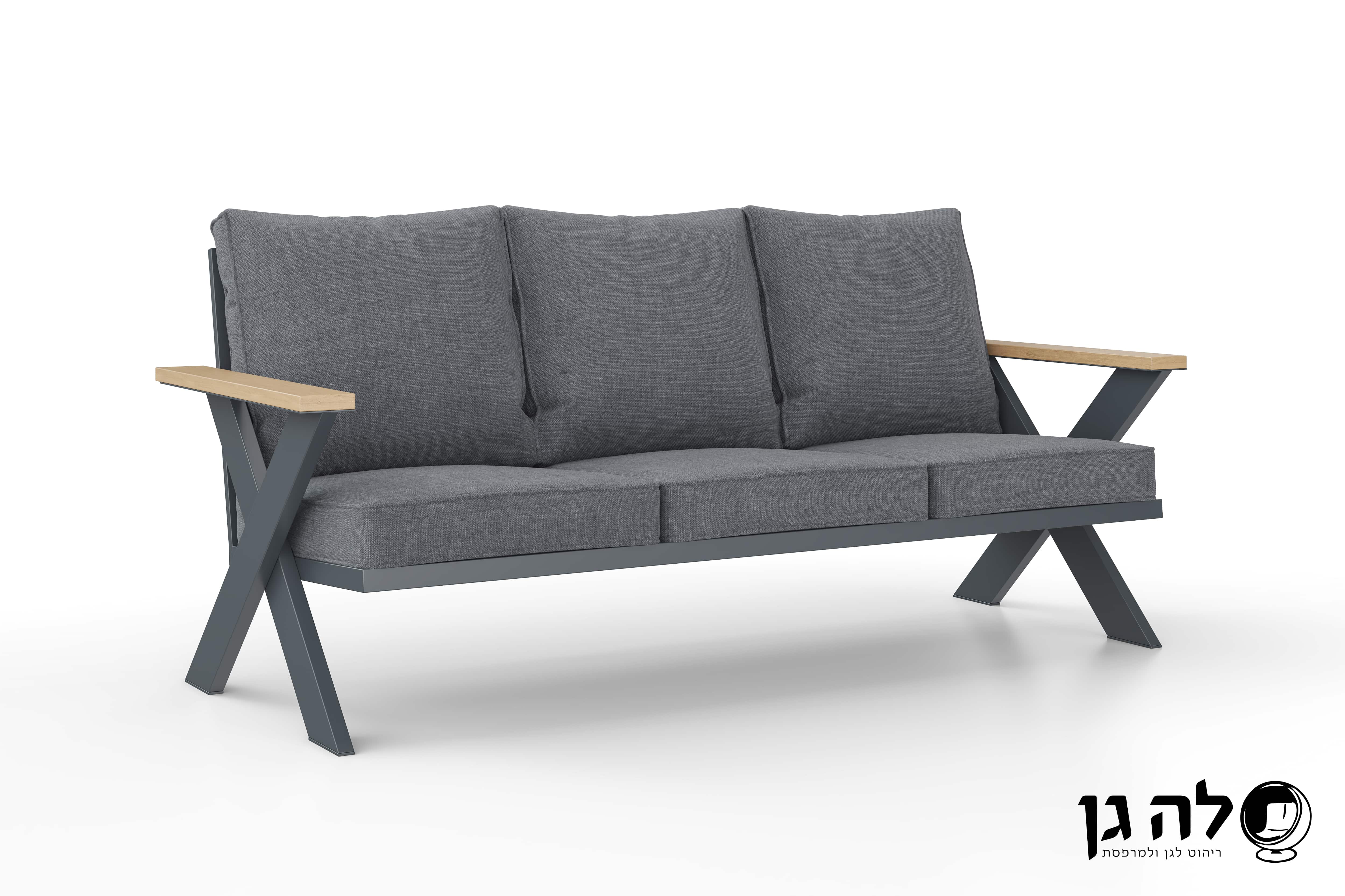 בנוסף, המערכת כוללת כריות גב ומושב עבות בגוון אפור כהה, עשויות מבד איכותי ונעים למגע. הכריות ניתנות לשליפה ולשטיפה בקלות באמצעות רוכסן נסתר בגב כל כרית.