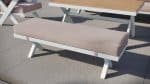 מערכת ישיבה מאלומיניום בעלת חמישה מושבים, שולחן גבוה וספסל לגינה. בעלת עיצוב מיוחד.