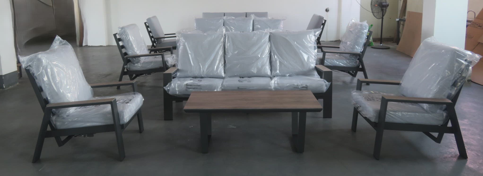 פינת ישיבה תלת-מושבית בעיצוב מודרני ונוח, המתאימה לגינה ולמרפסת.