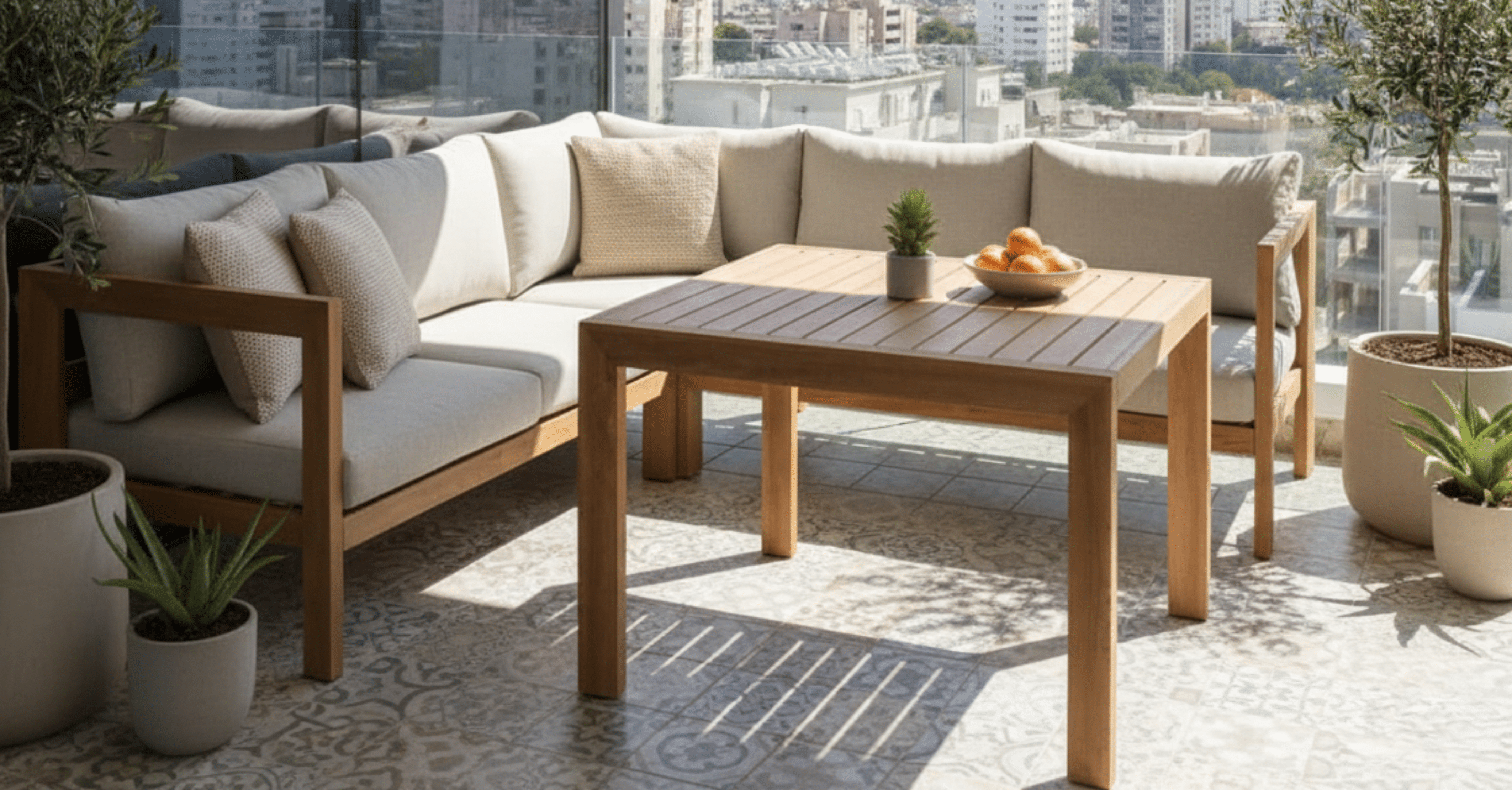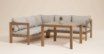 מערכת ישיבה פינתית, מערכת יוקרתית ומרשימה בעיצוב מודרני ונקי, המתאימה באופן מושלם גם לגינה וגם למרפסת. מדובר במערכת בעיצוב קלאסי עדכני המשתלב בהרמוניה בכל חלל חיצוני. שלדת המערכת עשויה מאלומיניום איכותי, עבה ומאסיבי, בגימור דמוי עץ בגוון טבעי המשדר חמימות וסטייל. השלדה עוברת צביעה בתנור בטכנולוגיית Powder Coating מתקדמת בתלת שכבתית, כולל שכבת הגנה מיוחדת מסוג ANTISCRACH למניעת שריטות, להבטחת עמידות גבוהה במיוחד לאורך שנים בכל תנאי מזג האוויר. המערכת כוללת ספה פינתית מרווחת עם מושבים נוחים במיוחד, שולחן קפה תואם, וכריות ישיבה וגב עבות, רכות ומפנקות, עשויות בד איכותי נעים למגע, נשלפות וניתנות לכביסה בקלות הודות לרוכסן בגב כל כרית.