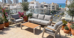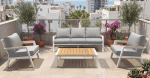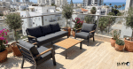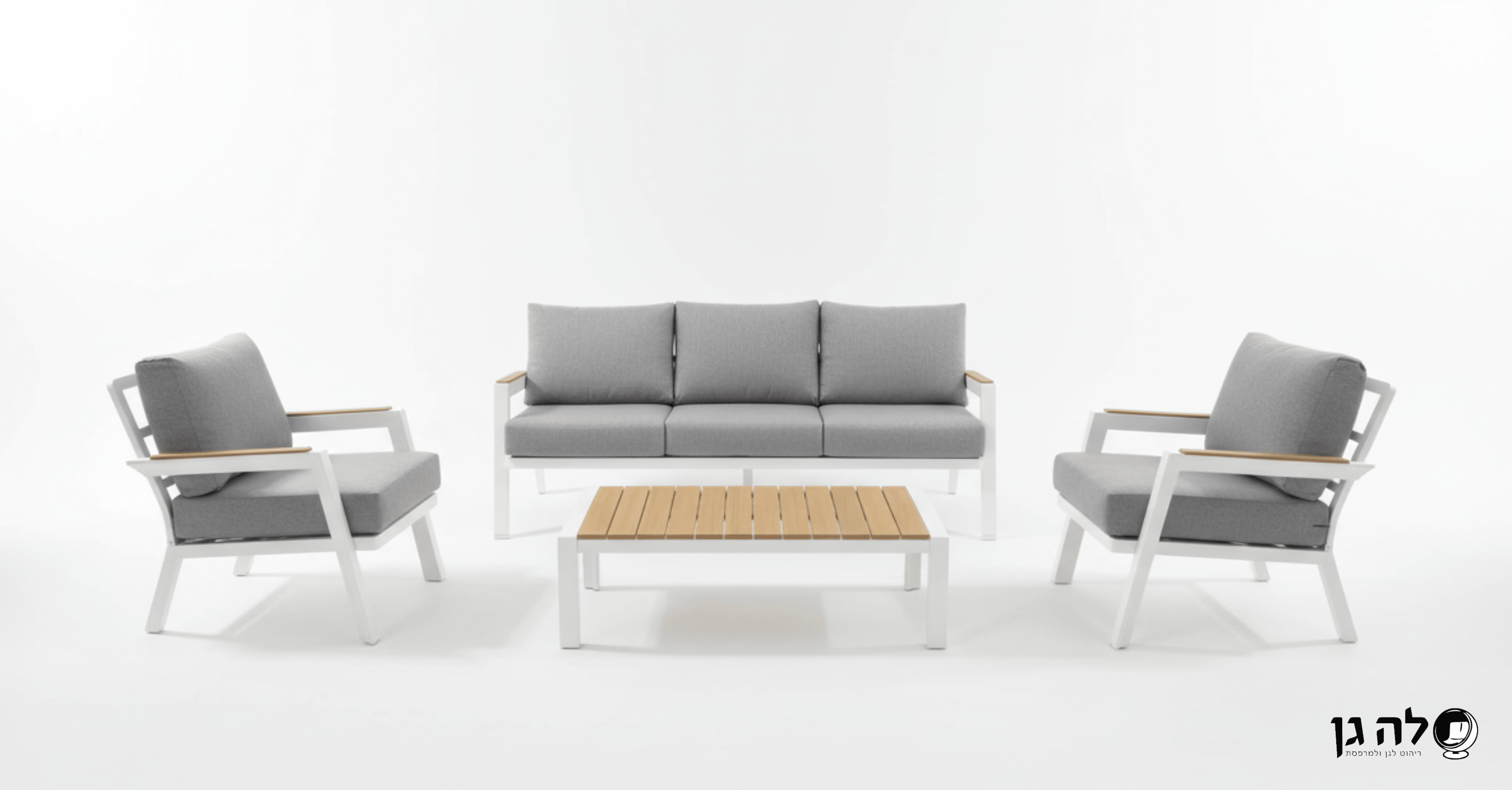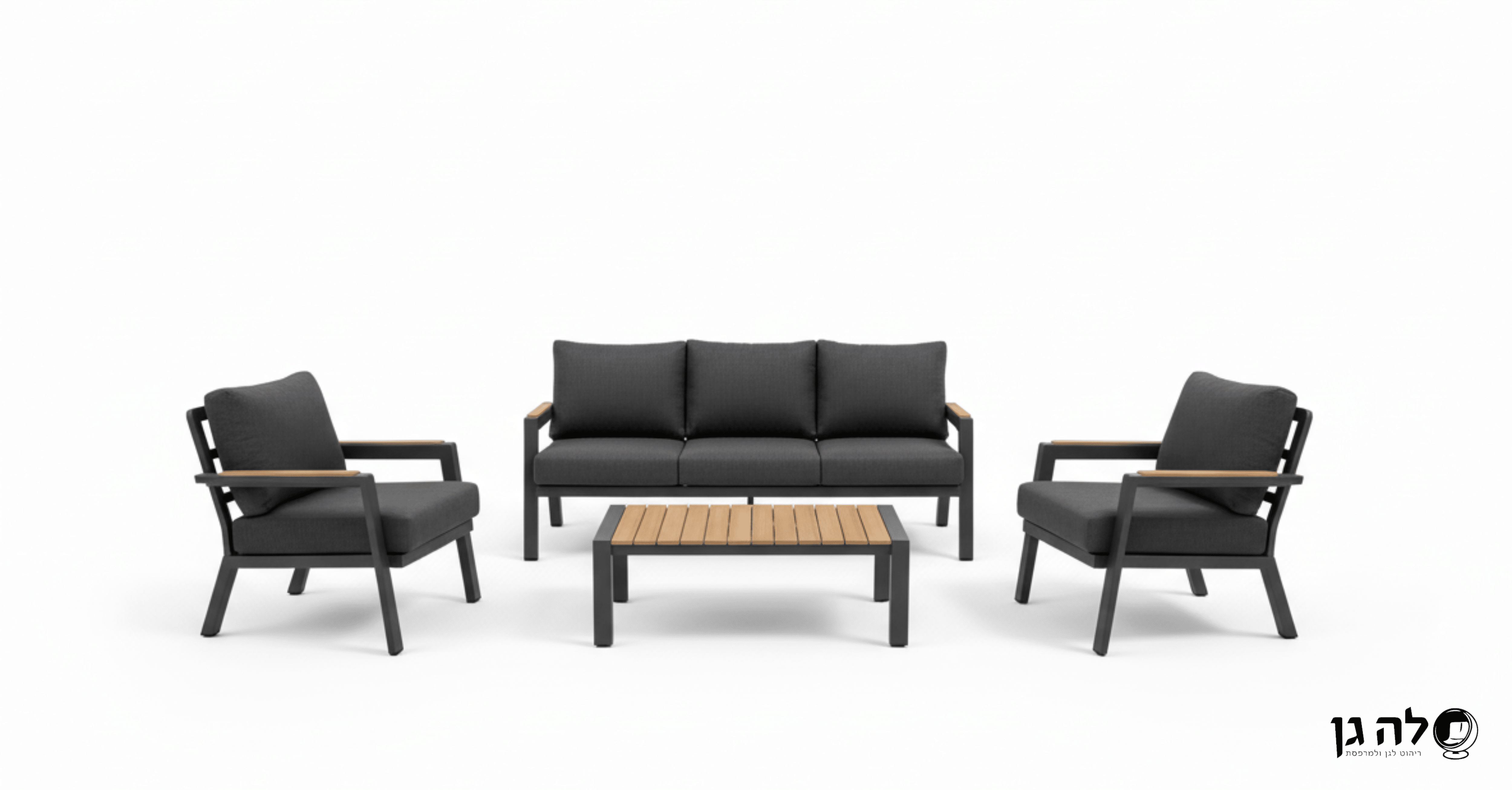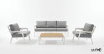 מערכת ישיבה מאלומיניום בעיצוב מודרני, בעלת ארבעה מושבים, ושולחן קפה