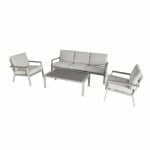 פינת ישיבה תלת-מושבית בעיצוב מודרני ואלגנטי, המתאימה לגינה ולמרפסת.