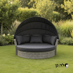 קונכיה מרשימה בעיצוב יוקרתי משלדת אלומיניום בחיפוי ראטן, מגיעה עם מזרון ושש כריות