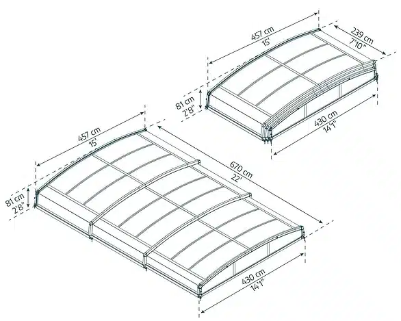 • גישה קלה ונוחה – המבנה קל להפעלה, נפתח לחלוטין מעבר לקצה הבריכה וניתן לגישה משני קצותיו.