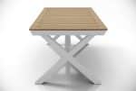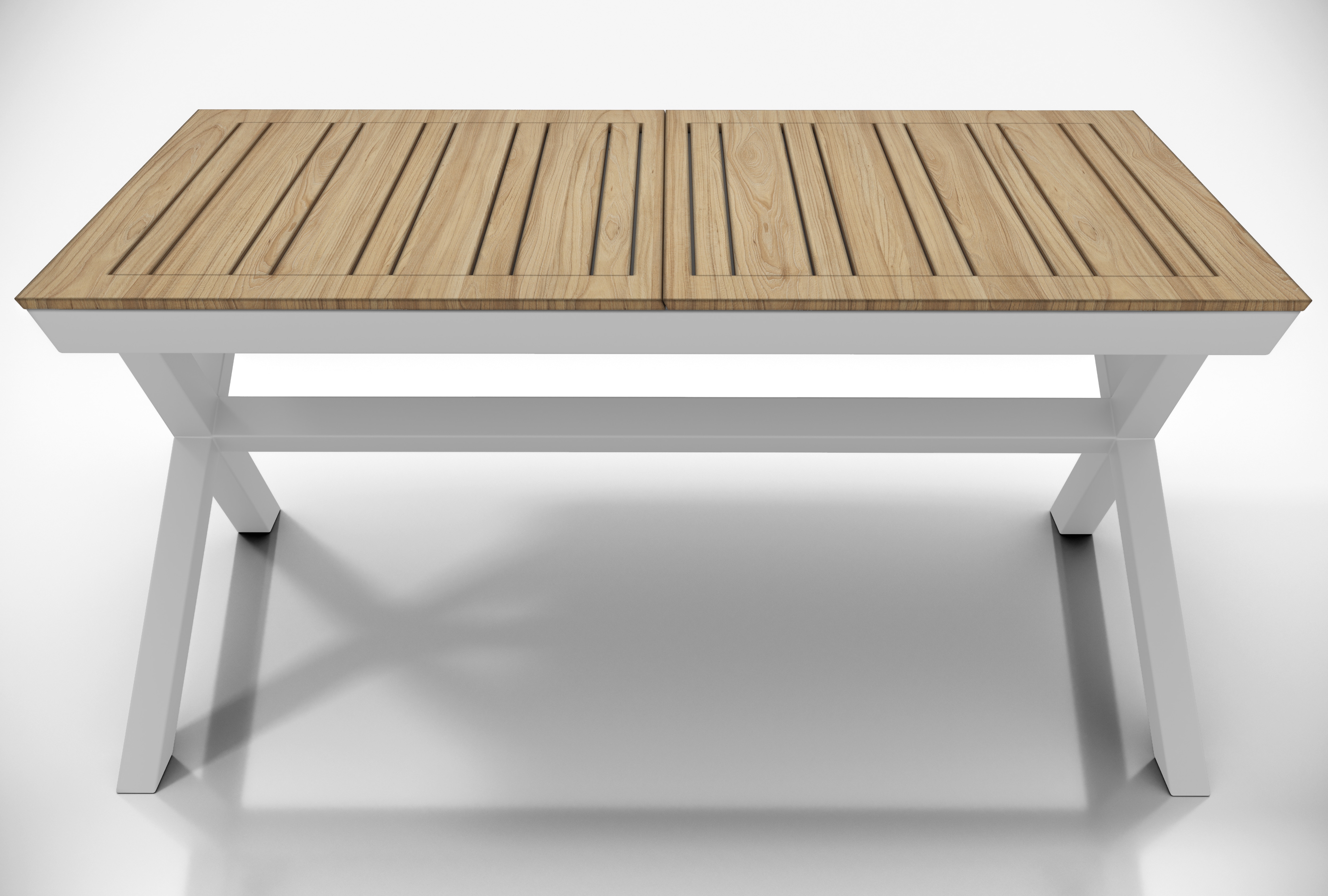 שולחן אוכל נפתח יוקרתי ומעוצב בקפידה, מהווה שילוב מושלם בין פונקציונליות לאסתטיקה. עשוי 100% מאלומיניום איכותי ועבה, השולחן צבוע בשיטת Powder Coating מתקדמת הכוללת שלוש שכבות צבע, ובכך מציעה הגנה מושלמת נגד שריטות עם שכבת ANTISCRACH. משטח השולחן דמוי עץ, רגליו, העשויות בצורת X מרשימה, לא רק מוסיפות ליוקרתיות המראה אלא גם מייעלות את מיקום הכסאות סביבו, מה שהופך אותו למושלם לכל סביבה עיצובית.