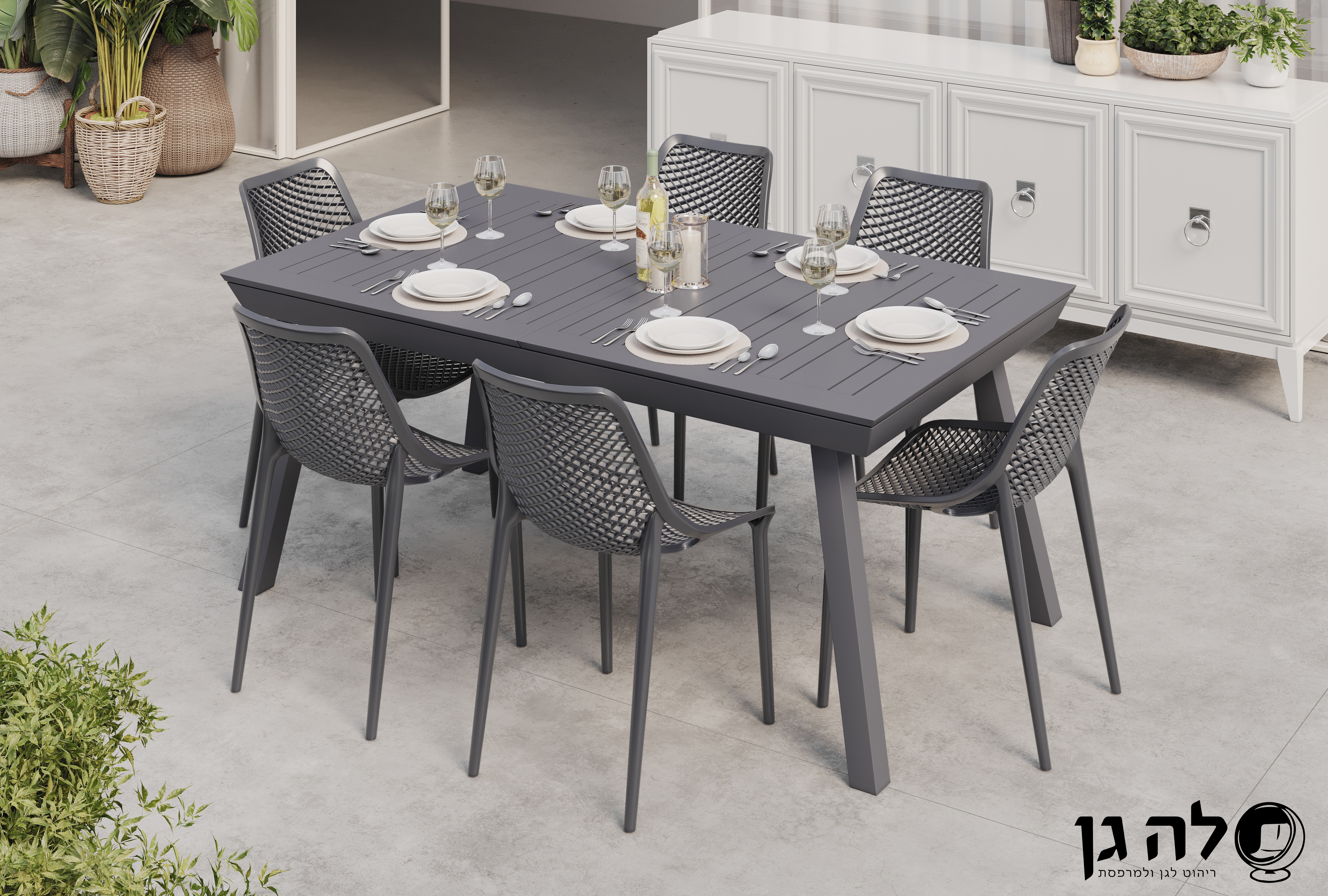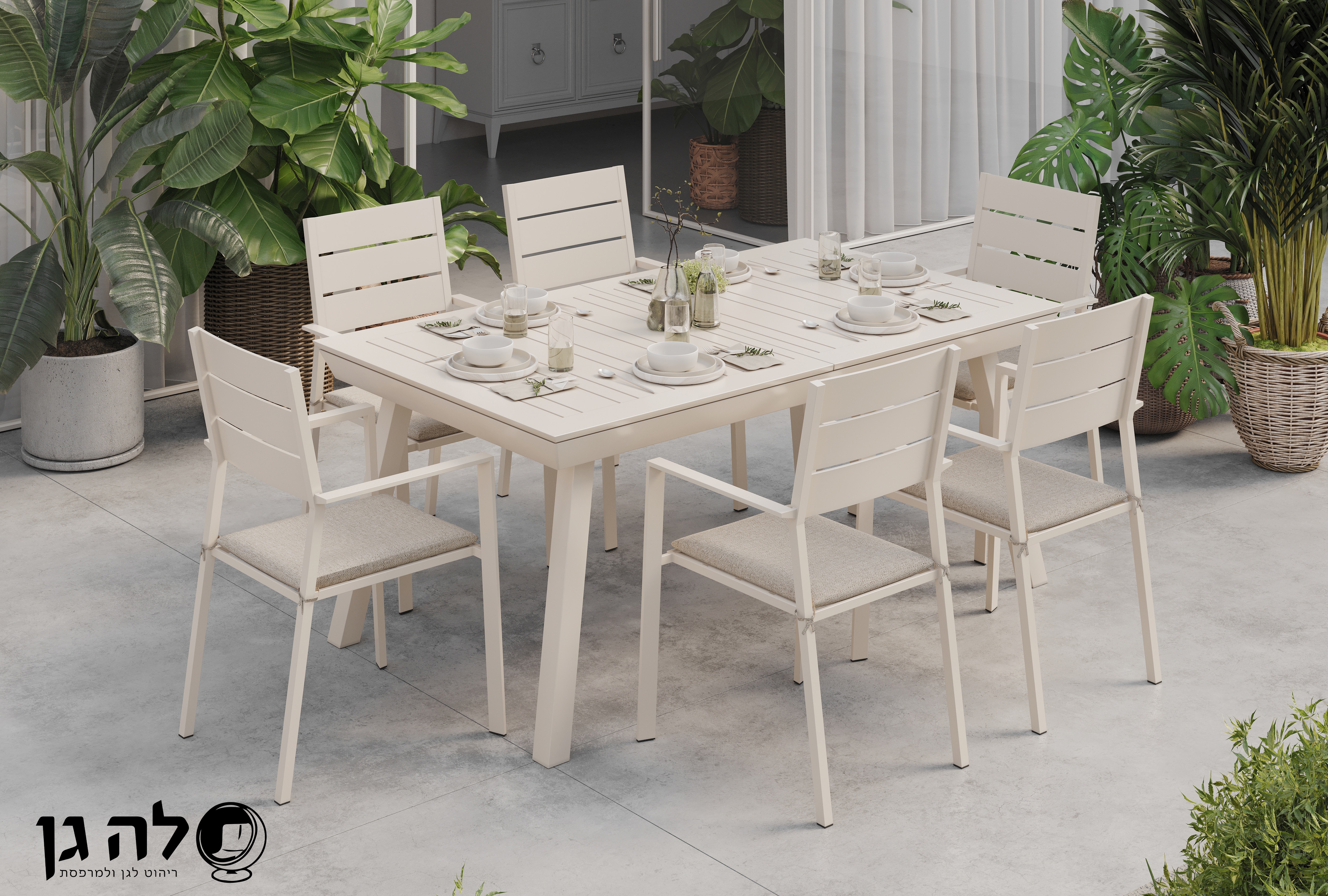 עשוי מאלומיניום| זמין ב3 צבעים | גודל 135/270/100 | כולל 6 כסאות