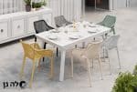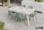 שולחן אוכל נפתח מאלומיניום בעיצוב מושלם, כולל 6 כסאות צבעוניים