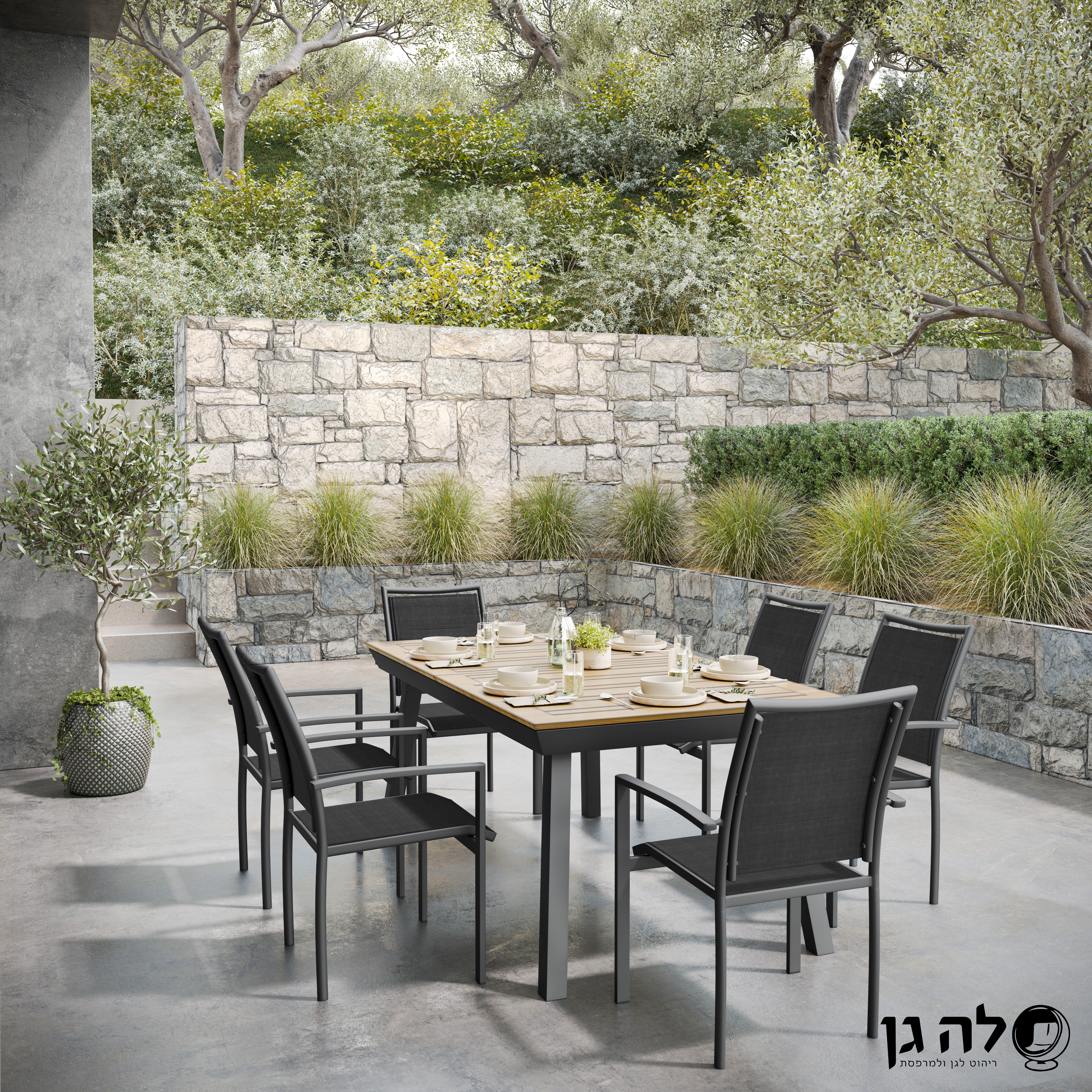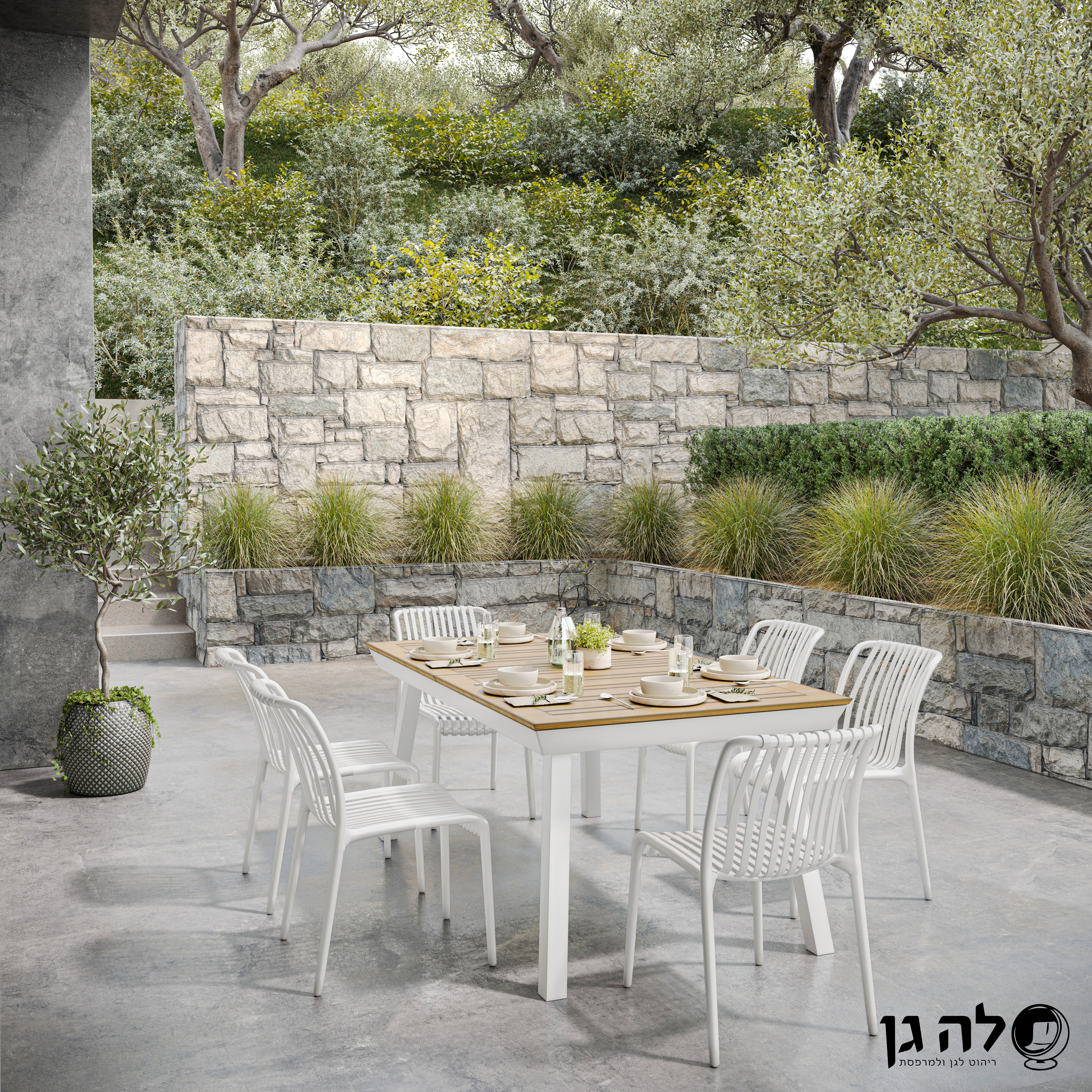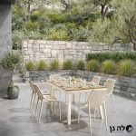 שולחן אוכל מאלומיניום בעיצוב חדיש דגם "קומו עץ" רגליים אלכסון