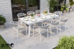 שולחן אוכל חזק ואיכותי עשוי מאלומיניום בעיצוב מודרני כולל 6 כסאות פלסטיק