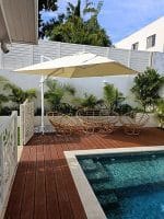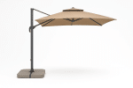 שמשיית פרימיום איכותית רגל צד אלומיניום בגודל 3X3 מטר עם מנגנון כיוונון מלא וסיבוב 360°, מתאימה לריהוט גן תוך ניצול חכם של השטח המוצל.