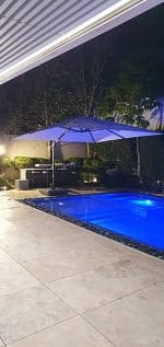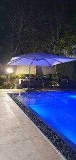 שמשיית רגל צד מסובבת מאלומיניום בגודל 4×4 מטר, כוללת בסיס כבד במיוחד במשקל 150 ק"ג לשמירה על יציבות מקסימלית גם ברוחות.