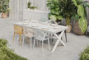 עשוי מאלומיניום | זמין ב4 צבעים | גודל 135/270/100 | כולל 4 כסאות מרופדים