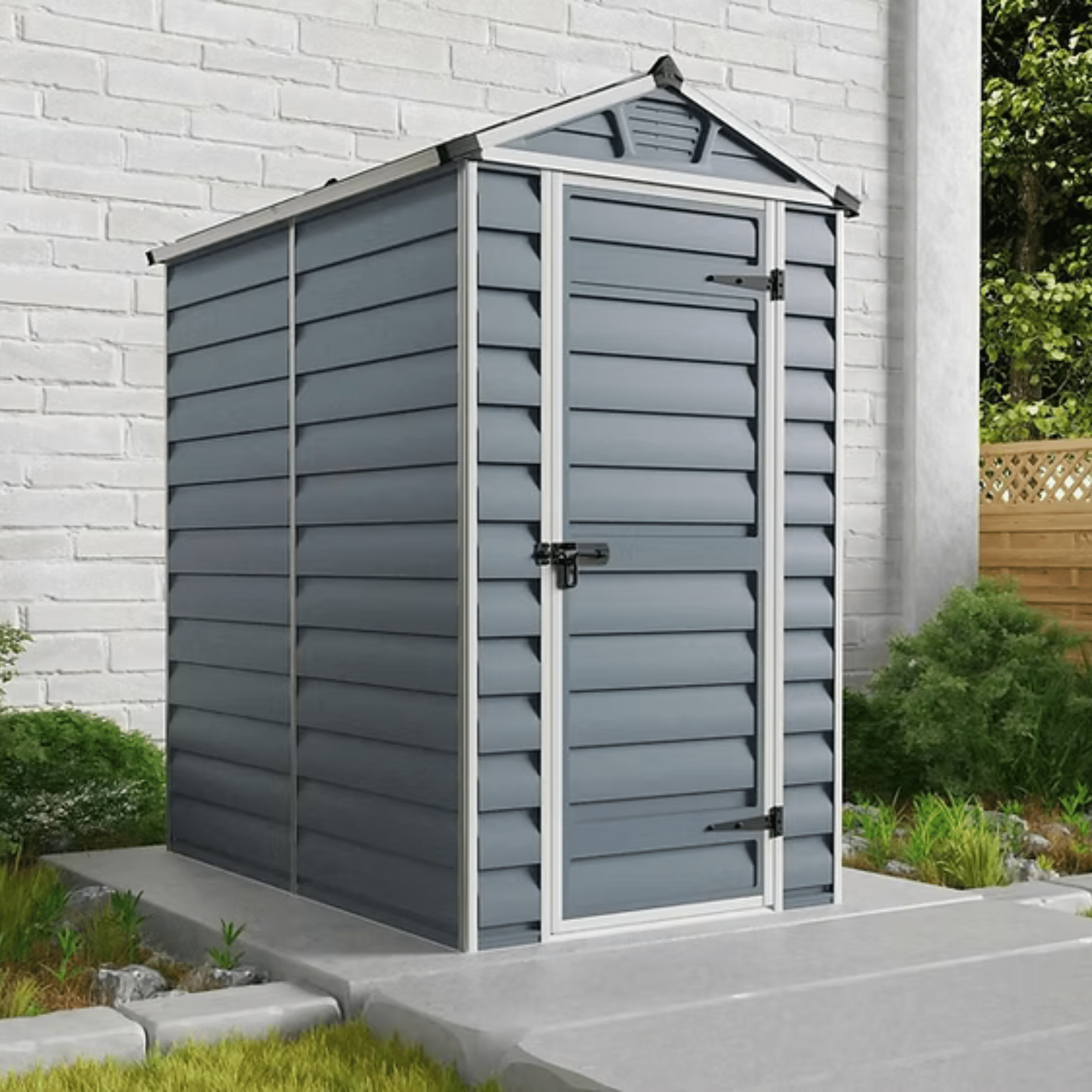 מחסן עמיד עם שלדת אלומיניום, לוחות פוליקרבונט מחוזקים וגג SKYLIGHT לחסימת UV והעברת אור טבעי. כולל רצפה מונעת החלקה, בריח נעילה ועמידות גבוהה בכל מזג אוויר.